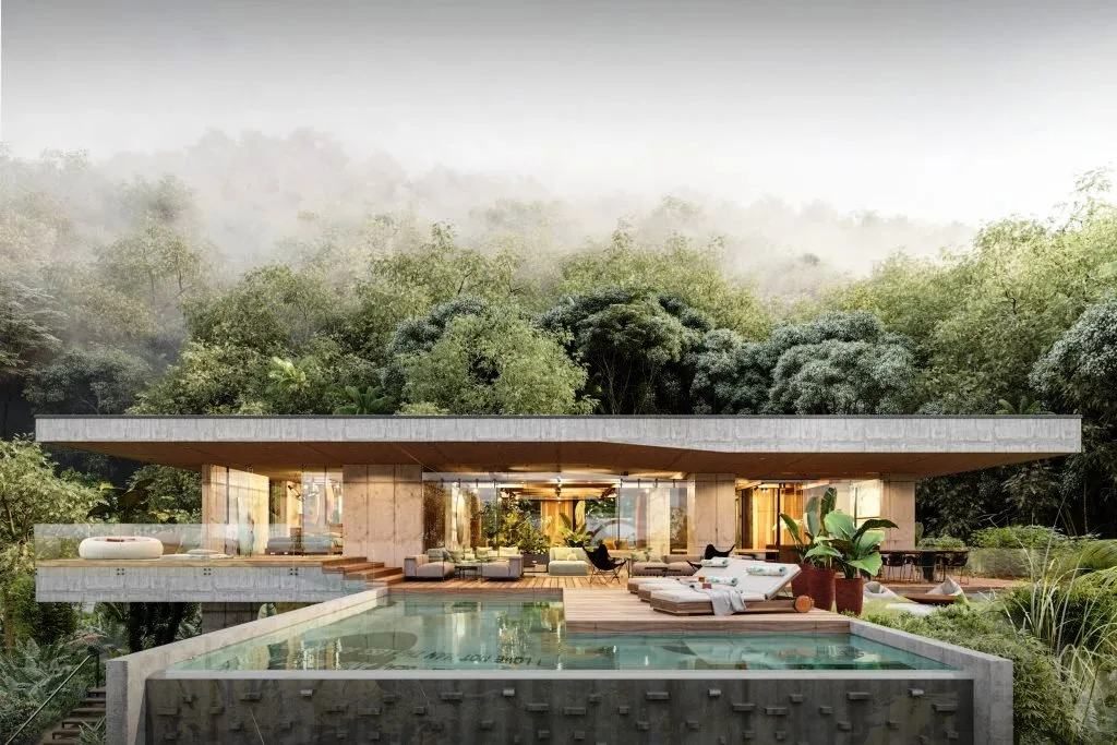 Constructora La Costa fue responsable por la preparación del sitio de construcción, nivelando la propiedad y toda la obra gris para esta casa habitacional construida en Playa Hermosa, Osa.